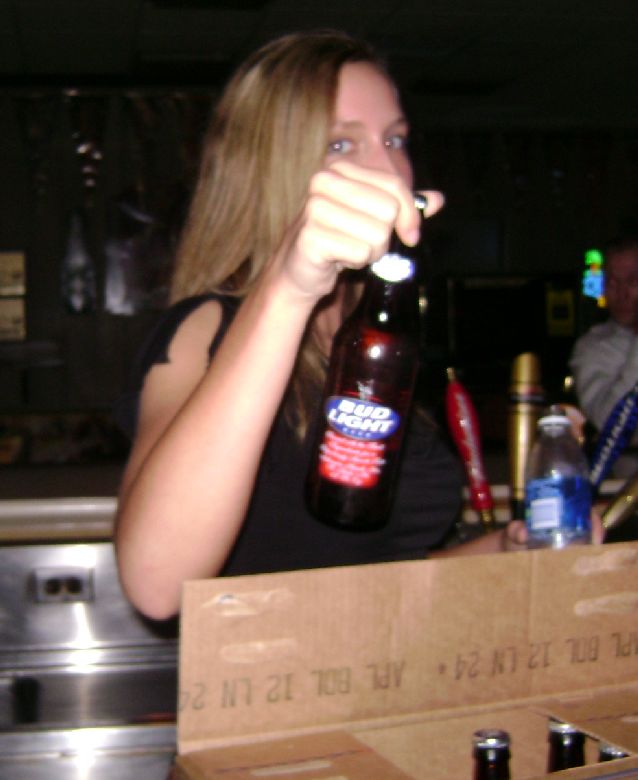 (We don't know much about Michelle, but it is early in the 2007 season and she has agreed to serve as our official bartender this year.) She has promised us a better picture from her facebook page, but here she is doing an impression of Wilson from "Home Improvement". |