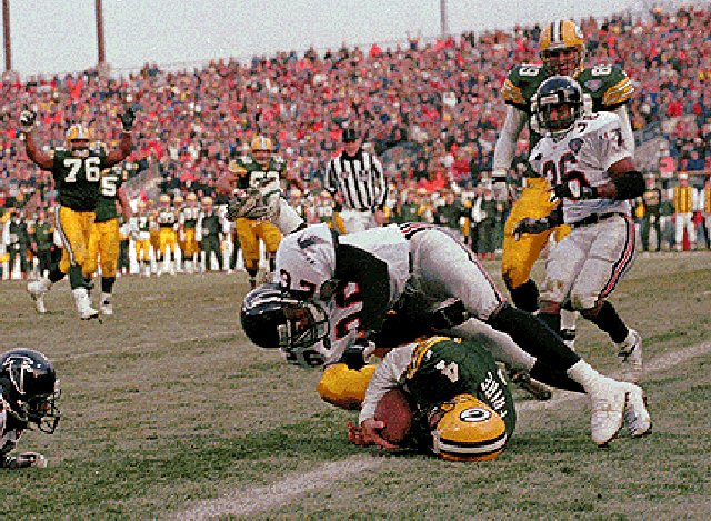 BRETT FAVRE scored the last touch down at County Stadium.